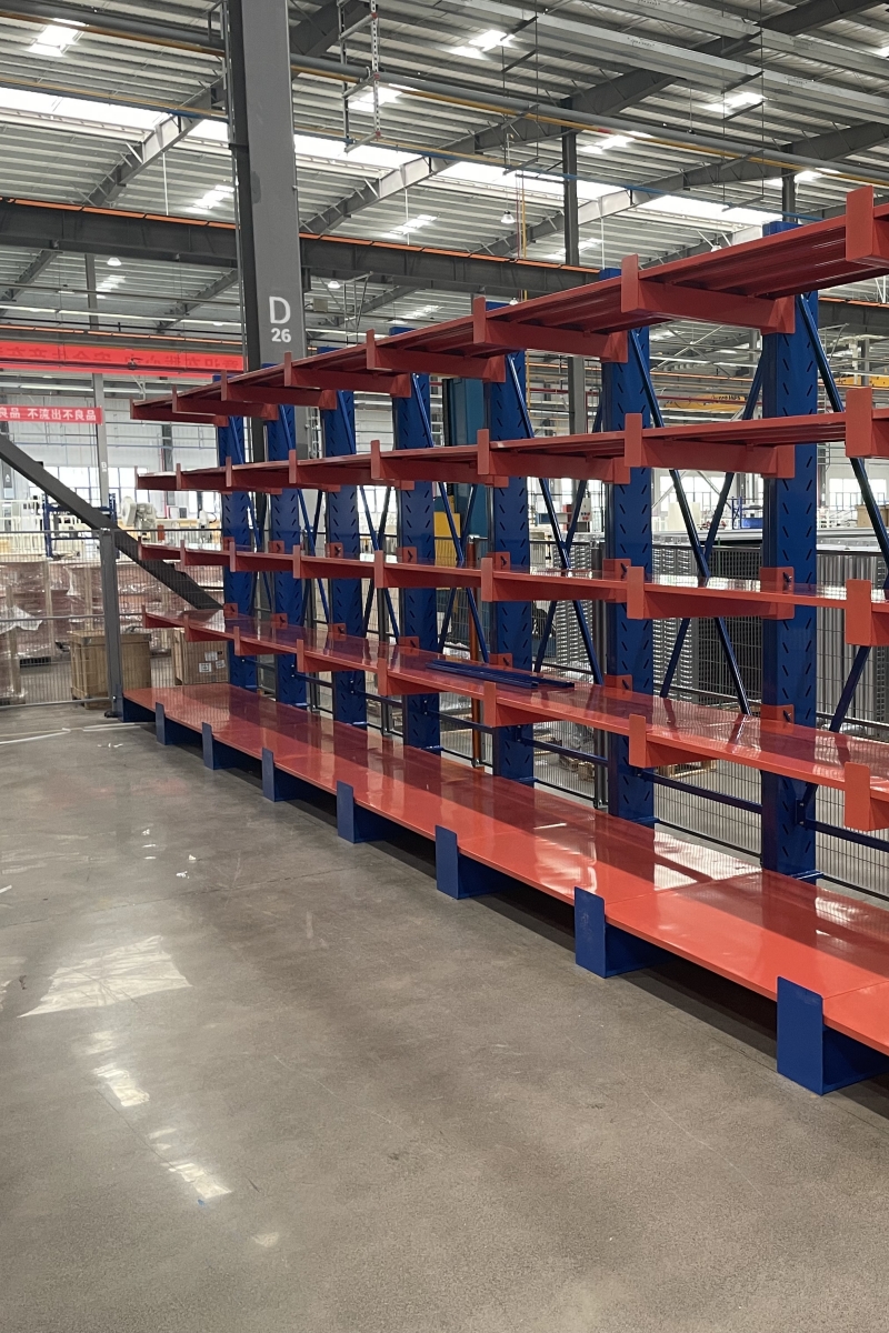 其實這一儲存方式也是很常見的,只需在懸臂上鋪設鋼制層板即可,承載也能滿足300-500Kg。如果想放的更重一些,層板底部的加強筋用厚一點的方管焊接,載重也能達到500Kg以上。