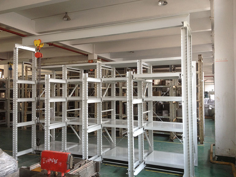 重型擱板式貨架:單元貨架每層載重通常在500~1500kg之間,單元貨架跨度一般在3m以內,深度在1.2m以內,高度不限,且通常是與重型托盤式貨架相結合、相并存,下面幾層為擱板式,人工存取作業(yè),高度在2m以上的部分通常為托盤式貨架,使用叉車進行存取作業(yè)。主要用于一些既需要整托存取,又要零存零取的情況,在大型倉儲式超市和物流中心較為多見。