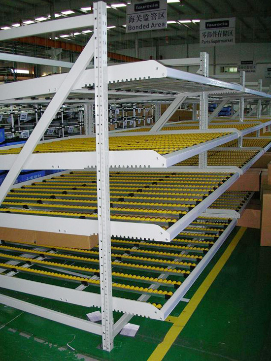 貨架的加設(shè)阻尼裝置,為使下滑流暢,如坡道較長(zhǎng),為使托盤(pán)貨物下滑至最底端時(shí)不致因沖擊力過(guò)大而傾翻,應(yīng)在坡道最低處設(shè)緩沖裝置和取貨分隔裝置,因此設(shè)計(jì)、制造、安裝難度較大,成本較高。