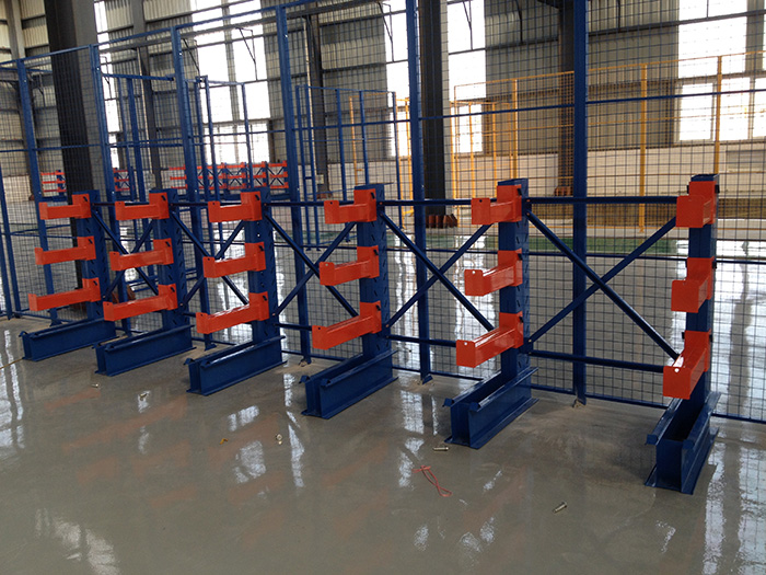 懸臂式貨架適用于存放長物料、環(huán)型物料、板材、管材及不規(guī)則貨物。懸臂式貨架立柱多采用H型鋼或冷軋型鋼,懸臂采用方管、冷軋型鋼或H型鋼,懸臂與立柱間采用插接式或螺栓連接式,底座與立柱間采用螺栓連接式,底座采用冷軋型鋼或H型鋼。貨物存取由叉車、行車或人工進行。