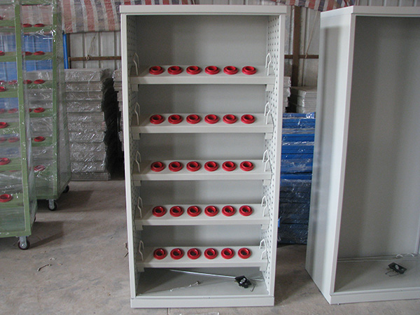 刀具架適用于加工車間、維修車間等場(chǎng)合,可分類放置刀具,并可靈活移動(dòng)方便取用。現(xiàn)代貨架廠生產(chǎn)的HY-HSK系列刀具車成多邊成型的前后側(cè)板上有模數(shù)化的人字孔,可將刀具座掛板按水平或15、30傾斜放置,方便多種刀具的存放。高強(qiáng)度腳輪,車前為兩個(gè)定向輪,車后為兩個(gè)萬(wàn)向帶 剎車輪,推行平穩(wěn),方向性好,剎車固定后不會(huì)滑動(dòng)。結(jié)構(gòu)特點(diǎn) 1.配有標(biāo)簽,明確分類. 2.快速拿出工具,節(jié)約查找時(shí)間. 3. 配有輪子,便于移動(dòng). 4.抽屜可拉出100%。